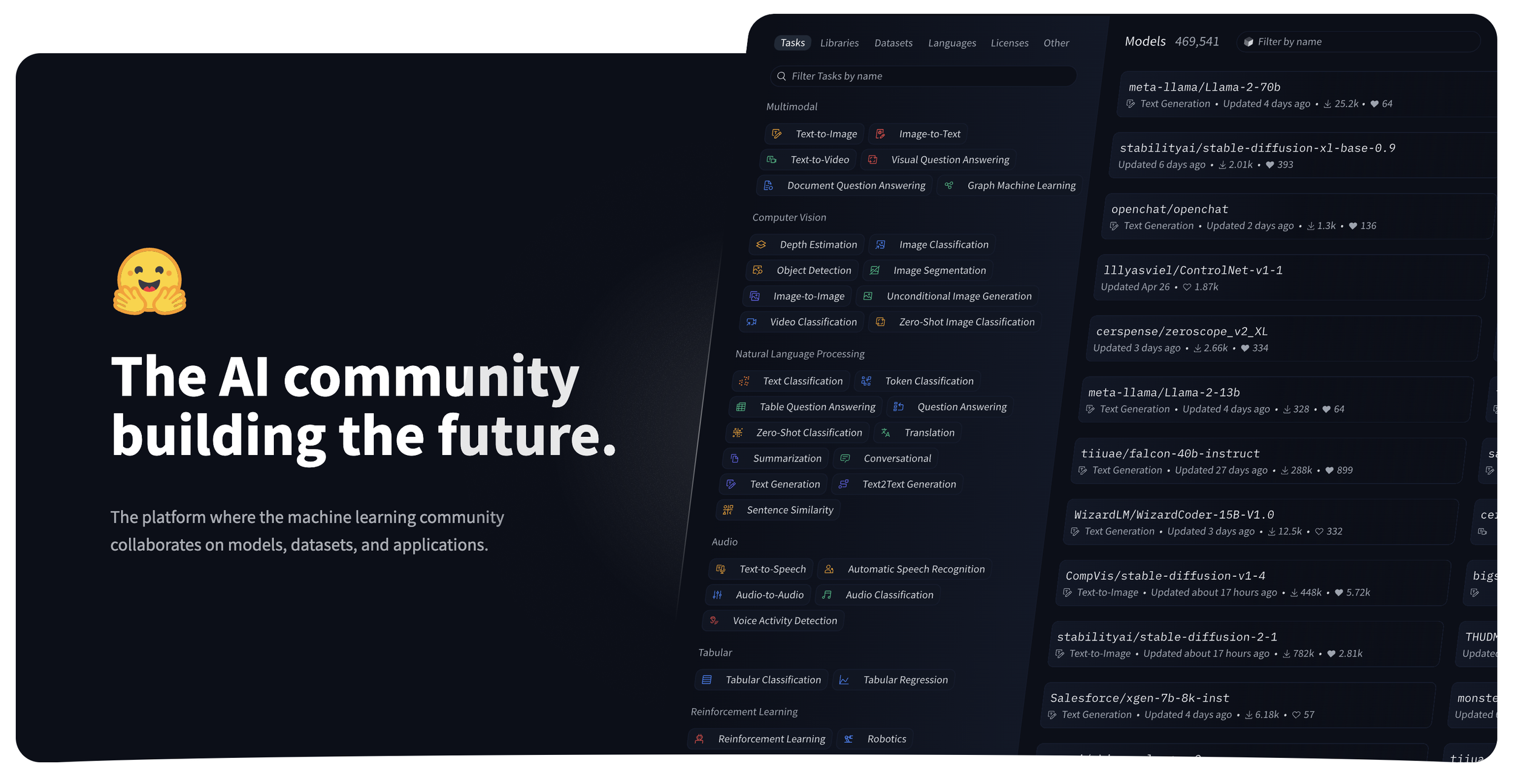 Find the greatest collection of models, datasets, and applications available at HuggingFace. A great place to begin interacting with these technologies.